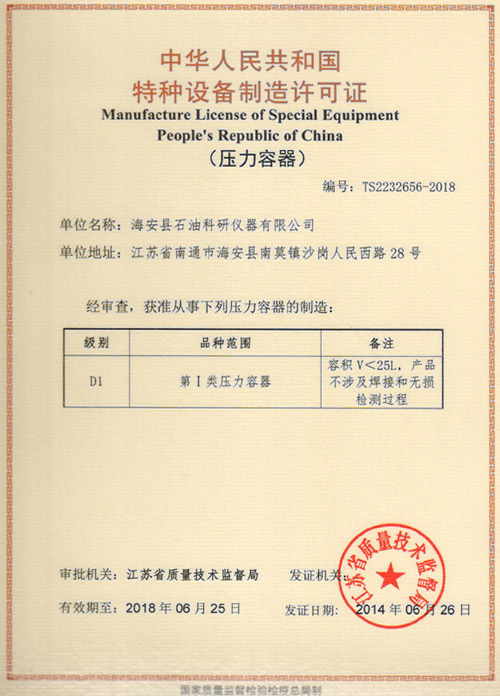 特種設備制造許可證(壓力容器)
